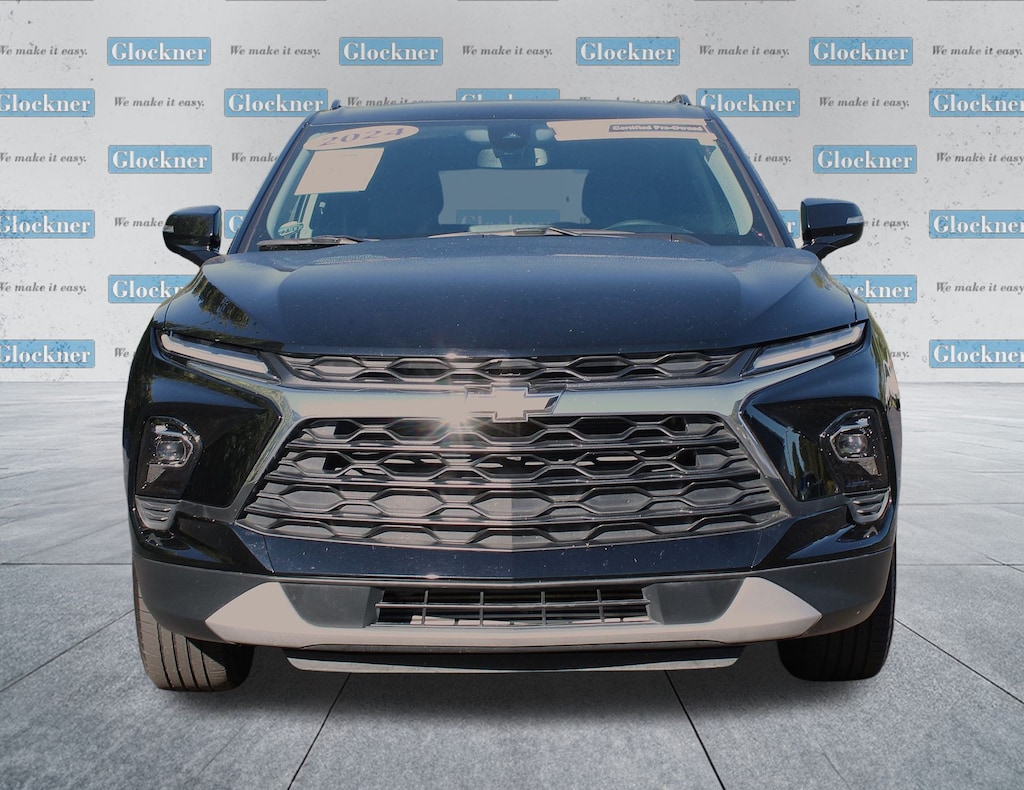 Glockner Honda Toyota is proud to offer this terrific-looking 2024 Chevrolet Blazer in Black. This 2024 Chevrolet Blazer has passed our comprehensive inspection and comes with the following features; Driver Confidence Package (Lane Change Alert w/Side Blind Zone Alert, Rear Cross Traffic Alert, and Rear Park Assist w/Audible Warning), Floor Liner Package (LPO) (1st & 2nd Row All-Weather Floor Liners (LPO) and Integrated Cargo Liner (LPO)), Preferred Equipment Group 3LT (6-Way Power Front Passenger Seat Adjuster, Black Roof-Mounted Side Rails, Inside Rear-View Auto-Dimming Mirror, Outside Heated Power-Adjustable Body-Color Mirrors, Rear Power Programmable Liftgate, and Universal Home Remote), Glockner Certified Certified, AWD, 170 Amp Alternator, 3.47 Final Drive Axle Ratio, 4-Wheel Disc Brakes, 6 Speakers, 6-Speaker Audio System Feature, 8-Way Power Driver Seat Adjuster, ABS brakes, Air Conditioning, Alloy wheels, AM/FM radio: SiriusXM with 360L, Apple CarPlay/Android Auto, Auto High-beam Headlights, Auto-dimming door mirrors, Auto-dimming Rear-View mirror, Automatic temperature control, Brake assist, Bumpers: body-color, Child-Seat-Sensing Airbag, Compass, Delay-off headlights, Driver door bin, Driver vanity mirror, Dual front impact airbags, Dual front side impact airbags, Electronic Stability Control, Emergency communication system: OnStar and Chevrolet connected services capable, Four wheel independent suspension, Front anti-roll bar, Front Bucket Seats, Front Center Armrest, Front dual zone A/C, Front reading lights, Fully automatic headlights, Garage door transmitter, Heated door mirrors, Heated Driver & Front Passenger Seats, Heated front seats, Illuminated entry, Knee airbag, Leather Shift Knob, Leather steering wheel, Low tire pressure warning, Occupant sensing airbag, Outside temperature display, Overhead airbag, Overhead console, Panic alarm, Passenger door bin, Passenger vanity mirror, Perforated Leather-Appointed Seat Trim, Power door mirrors, Power Driver Lumbar Control, Power driver seat, Power Liftgate, Power passenger seat, Power steering, Power windows, Premium audio system: Chevrolet Infotainment 3 Plus, Radio data system, Radio: Chevrolet Infotainment 3 Plus System, Rear anti-roll bar, Rear reading lights, Rear seat center armrest, Rear window defroster, Rear window wiper, Remote keyless entry, Ride & Handling Suspension, Security system, SiriusXM w/360L, Speed control, Speed-sensing steering, Split folding rear seat, Spoiler, Steering wheel mounted audio controls, Tachometer, Telescoping steering wheel, Tilt steering wheel, Traction control, Trip computer, Turn signal indicator mirrors, Variably intermittent wipers, Voltmeter, Wheels: 18" Grazen Metallic Aluminum, and Wheels: 20" Gloss Black Aluminum.