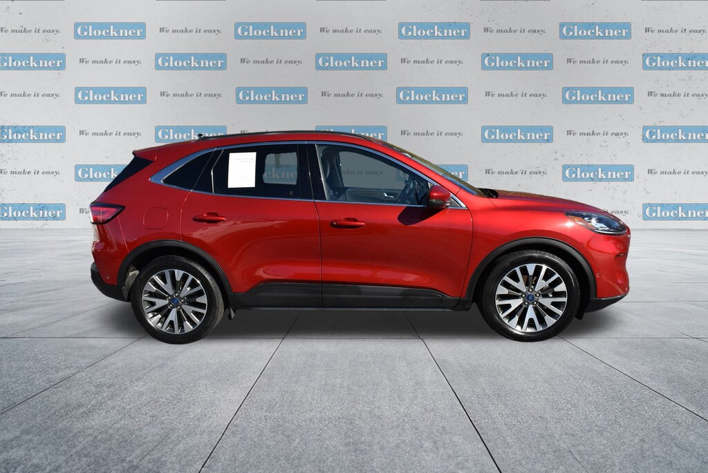 Glockner Ford Southpoint is proud to offer this charming-looking 2020 Ford Escape in Red. This 2020 Ford Escape has passed our comprehensive inspection and comes with the following features; Equipment Group 400A (Pedestrian Alert Sounder and Wireless Charging Pad), Ford Blue Advantage: Blue Certified Certified, 2.5L iVCT, eCVT, 10 Speakers, 2.91 Axle Ratio, 4-Wheel Disc Brakes, ABS brakes, Air Conditioning, Alloy wheels, AM/FM radio: SiriusXM, Auto High-beam Headlights, Auto-dimming Rear-View mirror, Automatic temperature control, Brake assist, Bumpers: body-color, Compass, Delay-off headlights, Driver door bin, Driver vanity mirror, Dual front impact airbags, Dual front side impact airbags, Electronic Stability Control, Emergency communication system: SYNC 3 911 Assist, Exterior Parking Camera Rear, FordPass Connect, Four wheel independent suspension, Front anti-roll bar, Front Bucket Seats, Front Center Armrest, Front dual zone A/C, Front fog lights, Front reading lights, Fully automatic headlights, Garage door transmitter, Heated door mirrors, Heated front seats, Heated Leather-Trimmed Front Sport Contour Seats, Heated steering wheel, Illuminated entry, Knee airbag, Leather steering wheel, Memory seat, Navigation System, Occupant sensing airbag, Outside temperature display, Overhead airbag, Overhead console, Panic alarm, Passenger door bin, Passenger vanity mirror, Power door mirrors, Power driver seat, Power Liftgate, Power passenger seat, Power steering, Power windows, Radio data system, Radio: B&O Sound System by Bang & Olufsen, Rain sensing wipers, Rear anti-roll bar, Rear reading lights, Rear seat center armrest, Rear window defroster, Rear window wiper, Remote keyless entry, Security system, Speed control, Speed-sensing steering, Speed-Sensitive Wipers, Split folding rear seat, Spoiler, Steering wheel mounted audio controls, SYNC 3 Communications & Entertainment System, Telescoping steering wheel, Tilt steering wheel, Traction control, Trip computer, Turn signal indicator mirrors, Variably intermittent wipers, Voice-Activated Touchscreen Navigation System, and Wheels: 19" Machined-Face Aluminum.