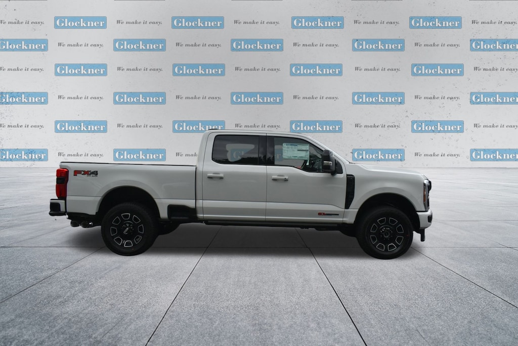 Glockner Southpoint Ford is proud to offer this reliable 2025 Ford F-350SD in Star White Metallic Tri-Coat. This 2025 Ford F-350SD has passed our comprehensive inspection and comes with the following features; 5th Wheel/Gooseneck Hitch Prep Package, FX4 Off-Road Package (Hill Descent Control, Off-Road Specifically Tuned Shock Absorbers, and Unique FX4 Off-Road Box Decal), Snow Plow Prep Package, 4WD, 4-Wheel Disc Brakes, 410 Amp Dual Alternators, ABS brakes, Adjustable pedals, Air Conditioning, Alloy wheels, AM/FM radio: SiriusXM with 360L, Auto High-beam Headlights, Auto-dimming Rear-View mirror, Automatic temperature control, Brake assist, Compass, Delay-off headlights, Driver door bin, Driver vanity mirror, Dual front impact airbags, Dual front side impact airbags, Electronic Stability Control, Electronic-Locking w/3.55 Axle Ratio, Electronic-Locking w/3.73 Axle Ratio, Emergency communication system: SYNC 4 911 Assist, Engine Block Heater, Flow-Through Console, Front & Rear Wheel Well Liners (Pre-Installed), Front anti-roll bar, Front Bucket Seats, Front Center Armrest, Front dual zone A/C, Front fog lights, Front reading lights, Fully automatic headlights, Garage door transmitter, Heated door mirrors, Heated front seats, Heated rear seats, Heated steering wheel, Illuminated entry, LED Roof Clearance Lights, Low tire pressure warning, Memory seat, Navigation System, Outside temperature display, Overhead airbag, Overhead console, Panic alarm, Passenger door bin, Passenger vanity mirror, Pedal memory, Power door mirrors, Power driver seat, Power passenger seat, Power steering, Power windows, Radio: B&O Unleashed Sound System by Bang & Olufsen, Rain sensing wipers, Rear reading lights, Rear seat center armrest, Rear step bumper, Rear window defroster, Remote keyless entry, Security system, SiriusXM Radio w/360L, Speed control, Split folding rear seat, Steering wheel mounted audio controls, SYNC 4 w/Enhanced Voice Recognition, Tachometer, Telescoping steering wheel, Tilt steering wheel, Traction control, Trip computer, Turn signal indicator mirrors, Twin Panel Power Moonroof, Upfitter Switches (6), Variably intermittent wipers, and Ventilated front seats.