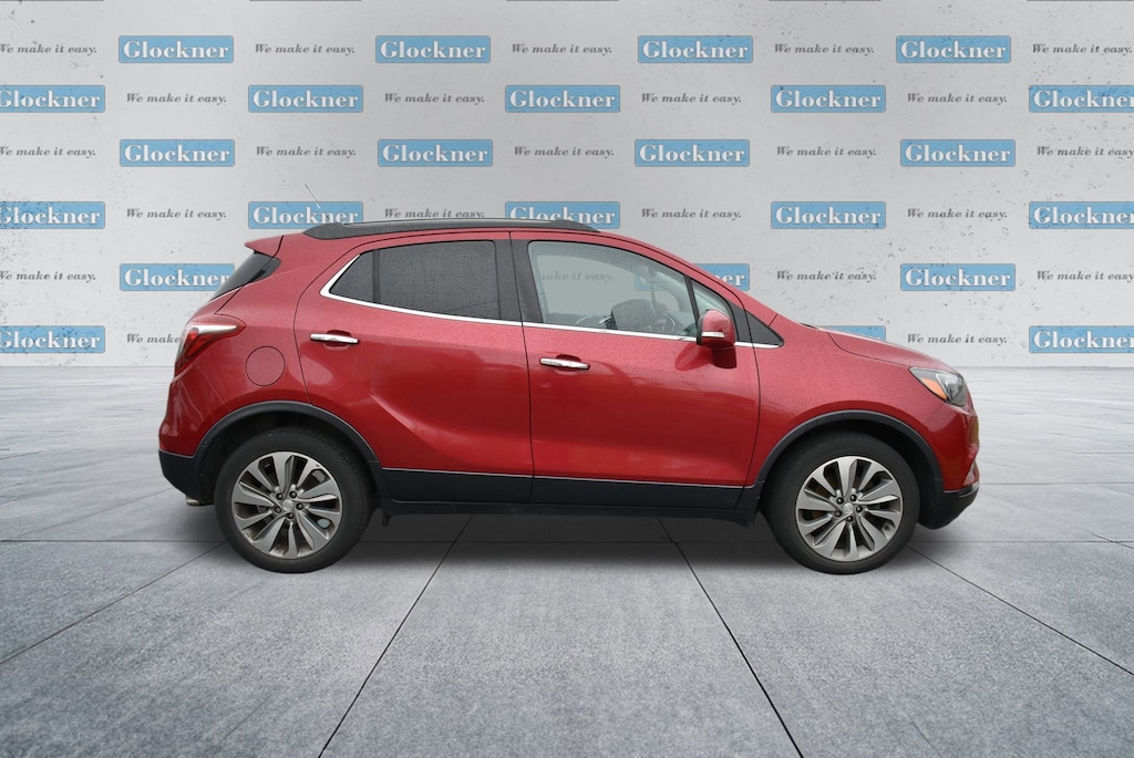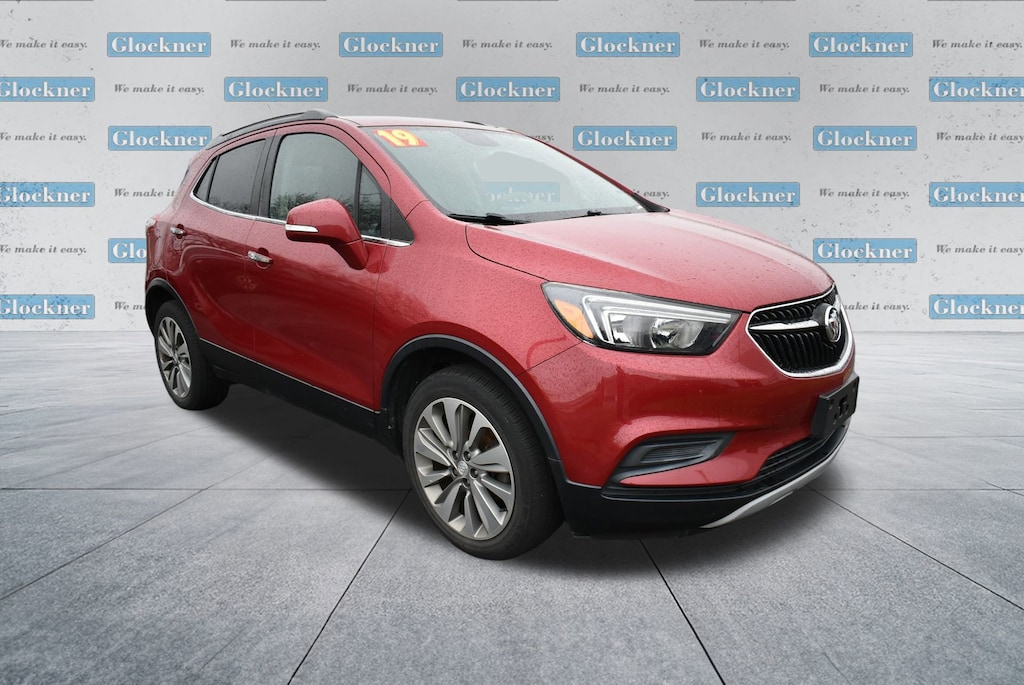 Glockner of Ironton is proud to offer this superb 2019 Buick Encore in Winterberry Red Metallic. This 2019 Buick Encore has passed our comprehensive inspection and comes with the following features; Preferred Equipment Group 1SB, Safety Package (120-Volt Power Outlet, Rear Cross Traffic Alert, and Side Blind Zone Alert), 2-Way Manual Front Passenger Seat Adjuster, 3.53 Final Drive Axle Ratio, 4-Wheel Disc Brakes, 6 Speakers, 6-Speaker Audio System, 6-Way Power Driver Seat Adjuster, ABS brakes, Air Conditioning, Alloy wheels, AM/FM radio: SiriusXM, Apple CarPlay/Android Auto, Brake assist, Bumpers: body-color, Cloth w/Leatherette Seat Trim, Compass, Delay-off headlights, Driver door bin, Driver vanity mirror, Driver's Seat Mounted Armrest, Dual front impact airbags, Dual front side impact airbags, Electronic Stability Control, Emergency communication system: OnStar and Buick connected services capable, Exterior Parking Camera Rear, Front anti-roll bar, Front Bucket Seats, Front reading lights, Front wheel independent suspension, Fully automatic headlights, Heated door mirrors, Illuminated entry, Knee airbag, Low tire pressure warning, Occupant sensing airbag, Outside temperature display, Overhead airbag, Panic alarm, Passenger door bin, Passenger vanity mirror, Power door mirrors, Power driver seat, Power steering, Power windows, Radio data system, Radio: Buick Infotainment System AM/FM Stereo, Rear seat center armrest, Rear side impact airbag, Rear window defroster, Rear window wiper, Remote keyless entry, Remote Vehicle Starter System, Ride & Handling Suspension, Roof rack: rails only, Security system, SiriusXM Radio, Speed control, Speed-sensing steering, Split folding rear seat, Spoiler, Steering wheel mounted audio controls, Tachometer, Telescoping steering wheel, Tilt steering wheel, Traction control, Trip computer, Turn signal indicator mirrors, Variably intermittent wipers, Wheel Lock Kit (LPO), and Wheels: 18 Machined-Face Alloy.25/30 City/Highway MPGAwards:* JD Power Dependability Study