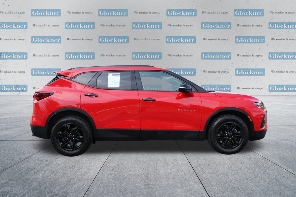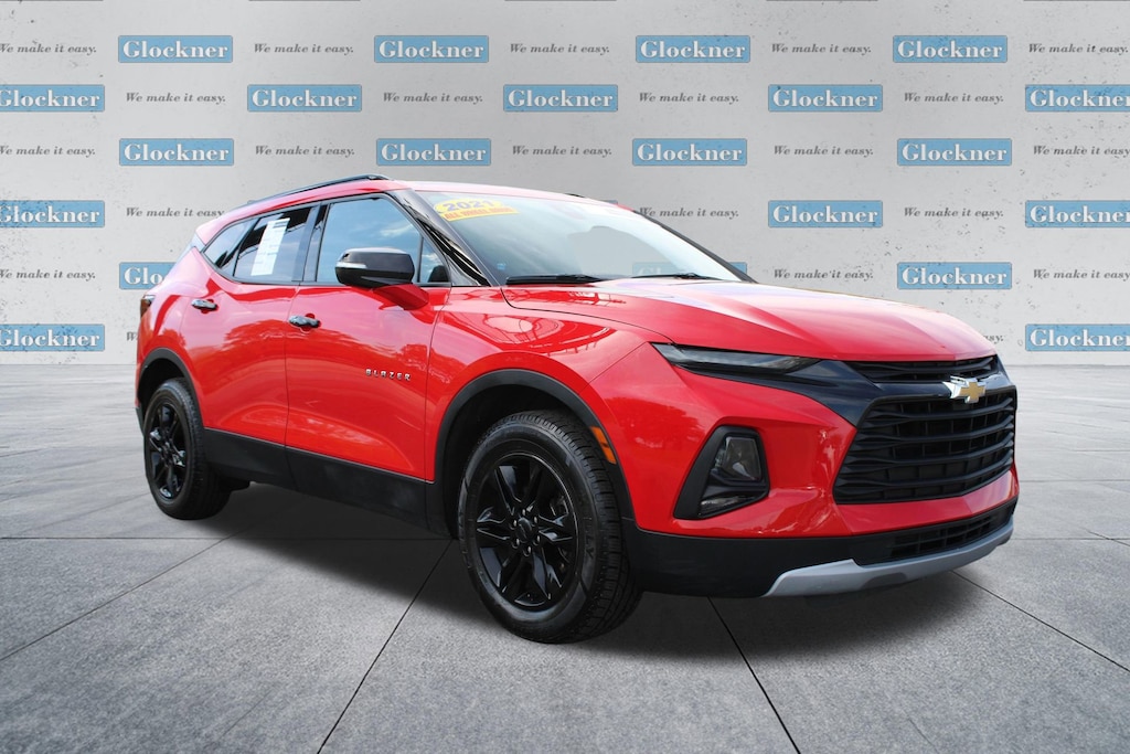 Glockner Chevrolet is proud to offer this terrific-looking 2021 Chevrolet Blazer in Red Hot. This 2021 Chevrolet Blazer has passed our comprehensive inspection and comes with the following features; Convenience & Driver Confidence Package (Black Roof Rails, Heated Driver & Front Passenger Seats, Inside Rear-View Auto-Dimming Mirror, Lane Change Alert w/Side Blind Zone Alert, Outside Heated Power-Adjustable Body-Color Mirrors, Rear Cross Traffic Alert, Rear Park Assist w/Audible Warning, Rear Power Programmable Liftgate, Remote Start, and Universal Home Remote), Preferred Equipment Group 2LT, Trailering Equipment (Heavy-Duty Cooling System and Hitch Guidance), Blazer LT, 4D Sport Utility, 3.6L V6 SIDI DOHC VVT, AWD, 3.47 Final Drive Axle Ratio, 3.49 Final Drive Axle Ratio, 4-Wheel Disc Brakes, 6 Speakers, 6-Speaker Audio System Feature, ABS brakes, Air Conditioning, Alloy wheels, AM/FM radio: SiriusXM, Apple CarPlay/Android Auto, Auto High-beam Headlights, Automatic temperature control, Brake assist, Bumpers: body-color, Child-Seat-Sensing Airbag, Compass, Delay-off headlights, Driver door bin, Driver vanity mirror, Dual front impact airbags, Dual front side impact airbags, Electronic Stability Control, Emergency communication system: OnStar and Chevrolet connected services capable, Exterior Parking Camera Rear, Four wheel independent suspension, Front anti-roll bar, Front Bucket Seats, Front Center Armrest, Front dual zone A/C, Front reading lights, Fully automatic headlights, Heated door mirrors, High-Intensity Discharge Headlights, Illuminated entry, Knee airbag, Leather Shift Knob, Low tire pressure warning, Occupant sensing airbag, Outside temperature display, Overhead airbag, Overhead console, Panic alarm, Passenger door bin, Passenger vanity mirror, Power door mirrors, Power driver seat, Power steering, Power windows, Premium Cloth Seat Trim, Radio data system, Radio: Chevrolet Infotainment 3 System, Rear anti-roll bar, Rear reading lights, Rear seat center armrest, Rear window defroster, Rear window wiper, Remote keyless entry, Ride & Handling Suspension, Security system, SiriusXM Radio, Speed control, Speed-sensing steering, Split folding rear seat, Spoiler, Steering wheel mounted audio controls, Tachometer, Telescoping steering wheel, Tilt steering wheel, Traction control, Trip computer, Variably intermittent wipers, Voltmeter, and Wheels: 18 Bright Silver Aluminum.Clean Auto Check/No Accidents Reported, Bluetooth / Hands-Free Calling, Rear View Back Up Camera, Local Trade, Apple CarPlay/Android Auto, Blazer LT, 4D Sport Utility, 3.6L V6 SIDI DOHC VVT, AWD.19/26 City/Highway MPGOdometer is 5821 miles below market average!Awards:* JD Power Automotive Performance, Execution and Layout (APEAL) Study