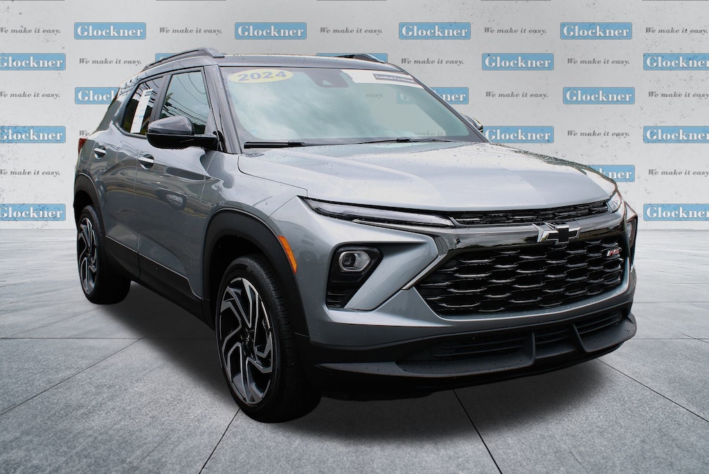 Certified. Certification Program Details: 12 Months or 12,000 miles Comprehensive Warranty. 5 Years or 100,000 miles Powertrain Warranty.Glockner of Ironton is proud to offer this terrific-looking 2024 Chevrolet TrailBlazer in Sterling Gray Metallic. This 2024 Chevrolet TrailBlazer has passed our comprehensive inspection and comes with the following features; Convenience Package (1 Type-A & 1 Type-C USB Charging-Only Ports, 120-Volt Power Outlet, Cabin Humidity Sensor, Driver & Front Passenger Illuminated Vanity Mirrors, Hands-Free Power Programmable Liftgate, Inside Rear-View Auto-Dimming Mirror, Single-Zone Auto Climate Control Air Conditioning, and Wireless Charging), Driver Confidence Package (Lane Change Alert w/Side Blind Zone Alert, Rear Cross Traffic Alert, and Rear Park Assist), Preferred Equipment Group 1RS, Glockner Certified Certified, 1 Type-A & 1 Type-C USB Ports, 11 Diagonal HD Color Touchscreen, 2-Way Power Driver Lumbar Seat Adjuster, 3.17 Final Drive Axle Ratio, 4-Way Manual Front Passenger Seat Adjuster, 4-Wheel Disc Brakes, 6 Speakers, 6-Speaker Audio System Feature w/Amplifier, 8-Way Power Driver Seat Adjuster, ABS brakes, Air Conditioning, Alloy wheels, AM/FM radio: SiriusXM, Auto High-beam Headlights, Brake assist, Bumpers: body-color, Chevrolet Connected Access Capable, Compass, Delay-off headlights, Driver door bin, Driver vanity mirror, Dual front impact airbags, Dual front side impact airbags, Electronic Stability Control, Emergency communication system: OnStar and Chevrolet connected services capable, Evotex Seat Trim, Exterior Parking Camera Rear, Flat-Folding Front Passenger Seatback, Front & Rear All-Weather Floor Liners (LPO), Front anti-roll bar, Front Bucket Seats, Front Center Armrest, Front reading lights, Front wheel independent suspension, Fully automatic headlights, Heated door mirrors, Heated Driver & Front Passenger Seats, Heated front seats, Heated steering wheel, Illuminated entry, Knee airbag, Low tire pressure warning, Mosaic Black Metallic Two-Tone Roof, Occupant sensing airbag, Overhead airbag, Overhead console, Panic alarm, Passenger door bin, Passenger vanity mirror, Power door mirrors, Power driver seat, Power steering, Power windows, Radio data system, Radio: AM/FM Stereo Audio System, Rear seat center armrest, Rear side impact airbag, Rear window defroster, Rear window wiper, Remote keyless entry, Ride & Handling Suspension, Security system, SiriusXM, Speed control, Split folding rear seat, Spoiler, Steering wheel mounted audio controls, Tachometer, Telescoping steering wheel, Tilt steering wheel, Traction control, Trip computer, Variably intermittent wipers, Wheels: 19 High Gloss Black Machined Aluminum, and Wireless Apple CarPlay/Android Auto.Full Balance of Factory Warranty, Clean Auto Check/No Accidents Reported, 1 Type-A & 1 Type-C USB Charging-Only Ports, 120-Volt Power Outlet, Cabin Humidity Sensor, Convenience Package, Driver & Front Passenger Illuminated Vanity Mirrors, Driver Confidence Package, Hands-Free Power Programmable Liftgate, Inside Rear-View Auto-Dimming Mirror, Lane Change Alert w/Side Blind Zone Alert, Preferred Equipment Group 1RS, Rear Cross Traffic Alert, Rear Park Assist, Single-Zone Auto Climate Control Air Conditioning, Wireless Charging.26/29 City/Highway MPG