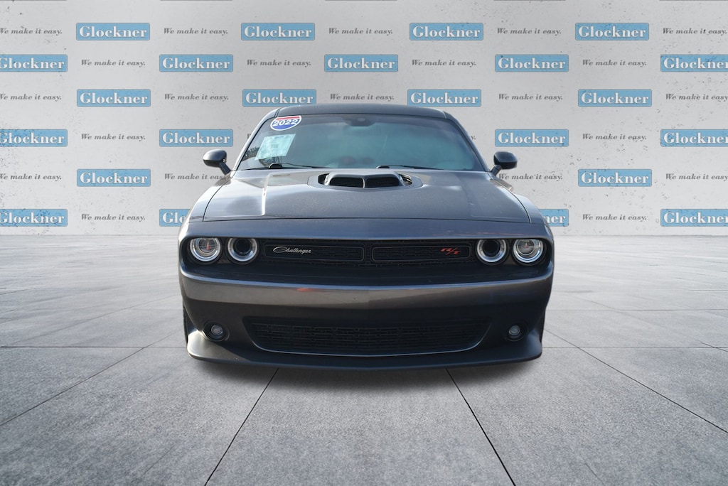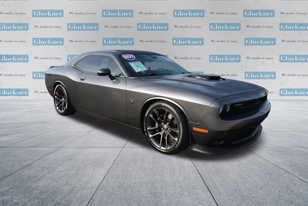 Glockner Chrysler Dodge Jeep Ram of Ashland is proud to offer this superb 2022 Dodge Challenger in Granite Crystal Metallic Clearcoat. This 2022 Dodge Challenger has passed our comprehensive inspection and comes with the following features; Driver Convenience Group (Power Multi-Function Foldaway Mirrors), harman/kardon Audio Group w/Subwoofer, Plus Package (Door Trim Panel w/Ambient Lighting), Quick Order Package 24G R/T Scat Pack, Shaker Package (MOPAR Shaker Intake and Shaker Mounted 392 HEMI Badge), Glockner Certified Certified, 1-Yr SiriusXM Guardian Trial, 4-Wheel Disc Brakes, 6 Speakers, 8.4" Touchscreen Display, ABS brakes, Air Conditioning, All Radio Equipped Vehicles, Alloy wheels, AM/FM radio: SiriusXM, Anti-whiplash front head restraints, Apple CarPlay, Apple CarPlay/Android Auto, Auto-dimming Rear-View mirror, Automatic temperature control, Brake assist, Bumpers: body-color, Compass, Compass Gauge, Delay-off headlights, Driver door bin, Driver vanity mirror, Dual front impact airbags, Dual front side impact airbags, Electronic Stability Control, Emergency communication system: SiriusXM Guardian, For Details, Visit DriveUconnect.com, Four wheel independent suspension, Front anti-roll bar, Front Bucket Seats, Front Center Armrest, Front dual zone A/C, Front fog lights, Front reading lights, Fully automatic headlights, Garage door transmitter, Google Android Auto, GPS Antenna Input, GPS Navigation, Heated door mirrors, Heated front seats, Heated steering wheel, Illuminated entry, Integrated Center Stack Radio, Integrated Voice Command w/Bluetooth, Leather Shift Knob, Low tire pressure warning, Media Hub (2 USB, AUX), Outside temperature display, Overhead airbag, Overhead console, Panic alarm, ParkView Rear Back-Up Camera, Passenger door bin, Passenger vanity mirror, Power door mirrors, Power driver seat, Power steering, Power Sunroof, Power windows, Radio data system, Radio: Uconnect 4C Nav w/8.4" Display, Radio: Uconnect 4C w/8.4" Display, Rear anti-roll bar, Rear reading lights, Rear seat center armrest, Rear window defroster, Remote keyless entry, Scat Pack Logo Houndstooth Seat, Security system, SiriusXM Satellite Radio, SiriusXM Traffic Plus, Speed control, Speed-sensing steering, Split folding rear seat, Spoiler, Sport steering wheel, Steering wheel mounted audio controls, Tachometer, Telescoping steering wheel, Tilt steering wheel, Traction control, Trip computer, USB Host Flip, Variably intermittent wipers, and Wheels: 20" x 9.0" Lo Gloss Granite CrystaL.
