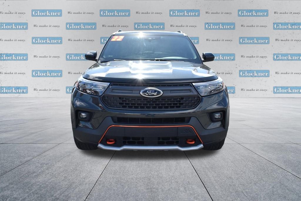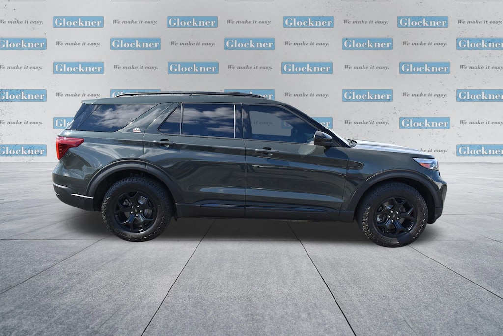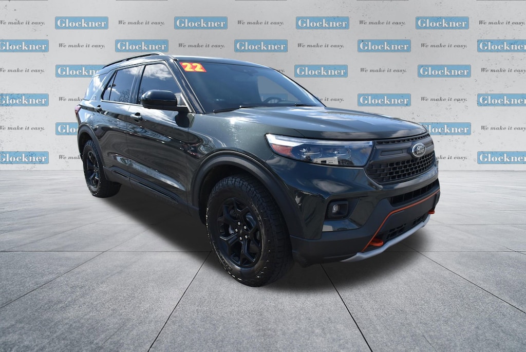 Glockner of Ironton is proud to offer this gorgeous-looking 2022 Ford Explorer in Green Metallic. This 2022 Ford Explorer has passed our comprehensive inspection and comes with the following features; Equipment Group 800A, Timberline Technology Package (110V/150W AC Power Outlet, 3rd Row PowerFold Seat, Auto-Dimming Interior Rear-View Mirror, FordPass Connect, Radio: B&O Sound System by Bang & Olufsen, Sideview Mirrors w/Gloss Black Caps, SYNC 3 Communications & Entertainment System, Universal Garage Door Opener (UGDO), and Wireless Charging Pad), 4WD, 1st Row Heated Seats, 3.58 Torsen Limited Slip Rear Axle, 3rd row seats: bench, 4-Wheel Disc Brakes, 4G LTE Wi-Fi Hotspot Removal Credit, 6 Speakers, ABS brakes, ActiveX Seat Material Captain's Charis, Air Conditioning, Alloy wheels, AM/FM radio: SiriusXM, AM/FM Stereo, Auto High-beam Headlights, Auto Start-Stop Removal, Automatic temperature control, Brake assist, Bumpers: body-color, Compass, Delay-off headlights, Driver door bin, Driver vanity mirror, Dual front impact airbags, Dual front side impact airbags, Electronic Stability Control, Emergency communication system: SYNC 3 911 Assist, Exterior Parking Camera Rear, Four wheel independent suspension, Front anti-roll bar, Front Bucket Seats, Front Center Armrest, Front dual zone A/C, Front fog lights, Front reading lights, Fully automatic headlights, Heated door mirrors, Heated front seats, Heated rear seats, Heated steering wheel, Illuminated entry, Knee airbag, Leather steering wheel, Low tire pressure warning, Navigation System, Occupant sensing airbag, Outside temperature display, Overhead airbag, Overhead console, Panic alarm, Passenger door bin, Passenger vanity mirror, Power door mirrors, Power driver seat, Power Liftgate, Power passenger seat, Power steering, Power windows, Rear air conditioning, Rear anti-roll bar, Rear reading lights, Rear window defroster, Rear window wiper, Remote keyless entry, Roof rack: rails only, Security system, SelectShift Capability w/Paddle Shifters, Speed control, Speed-sensing steering, Speed-Sensitive Wipers, Split folding rear seat, Spoiler, Sport steering wheel, Steering wheel mounted audio controls, SYNC 3/Apple CarPlay/Android Auto, Tachometer, Telescoping steering wheel, Tilt steering wheel, Traction control, Trip computer, Twin Panel Moonroof, Variably intermittent wipers, Voice-Activated Touchscreen Navigation System, and Wheels: 18 High Gloss Black-Painted Aluminum.