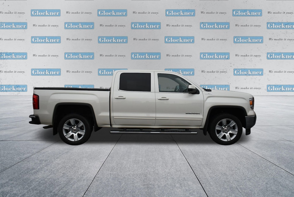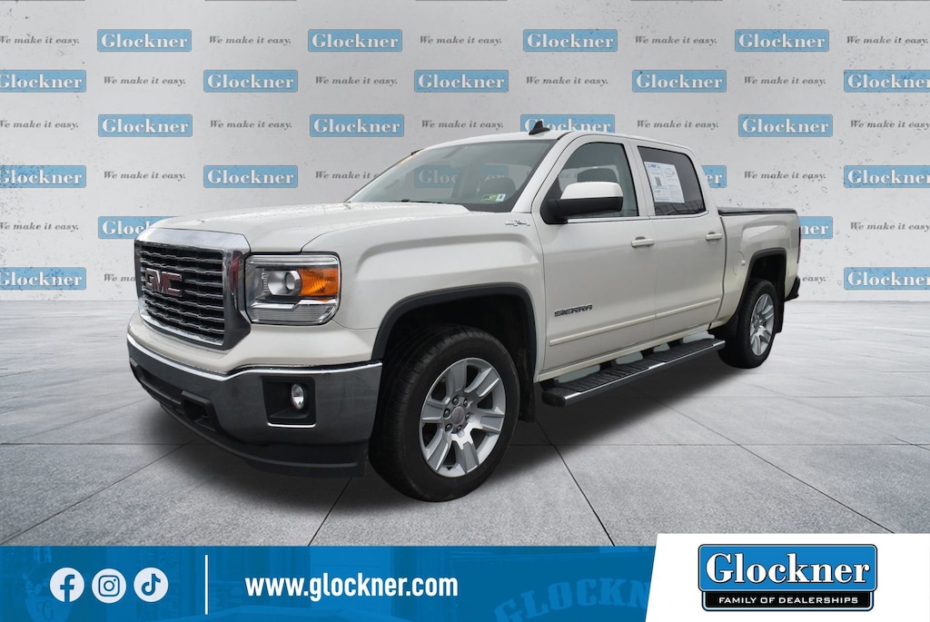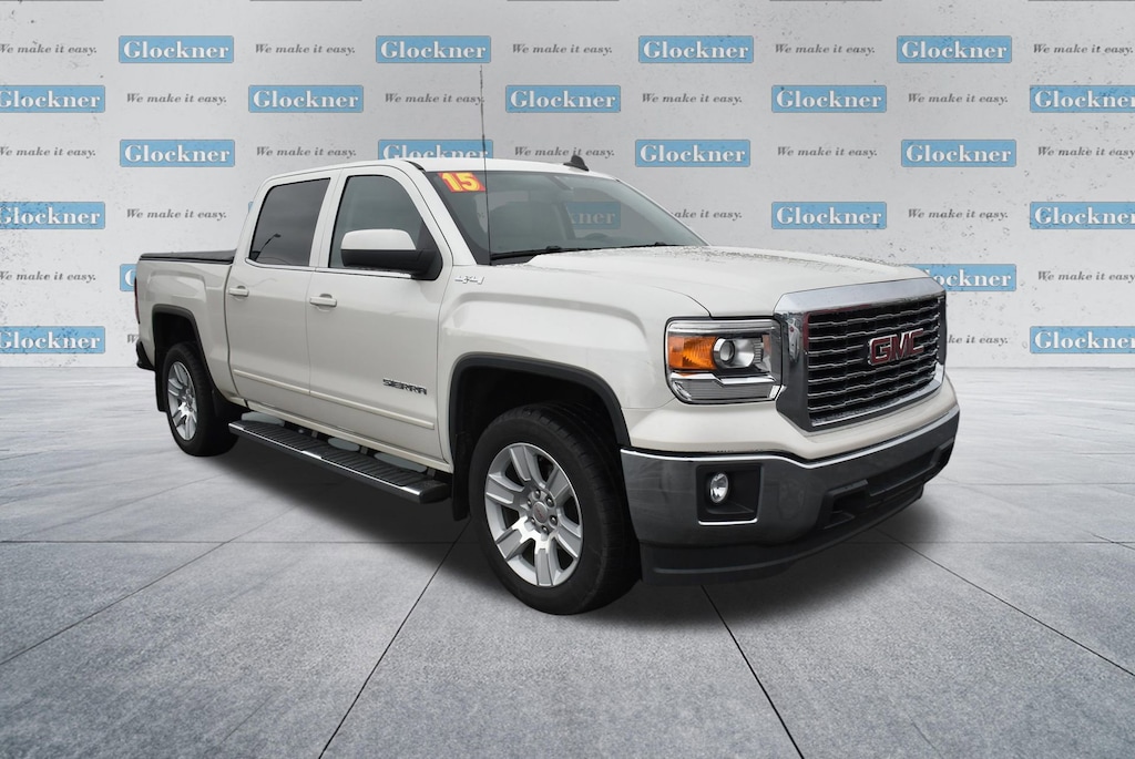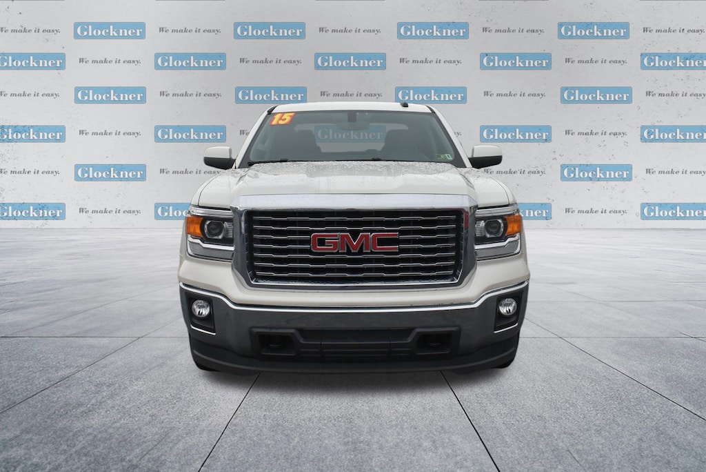 Glockner of Ironton is proud to offer this terrific-looking 2015 GMC Sierra 1500 in White Diamond Tricoat. This 2015 GMC Sierra 1500 has passed our comprehensive inspection and comes with the following features; Preferred Equipment Group 3SA (150 Amp Alternator, 4.2 Diagonal Color Display Driver Info Center, Body Color Bodyside Moldings, Body Color Door Handles, Body Color Power-Adjustable Heated Outside Mirrors, Body-Color Mirror Caps, Chrome Grille Surround, Color-Keyed Carpeting w/Rubberized Vinyl Floor Mats, Deep-Tinted Glass, Driver & Front Passenger Illuminated Vanity Mirrors, Electronic Autotrac Transfer Case, EZ Lift & Lower Tailgate, Front Frame-Mounted Black Recovery Hooks, Heavy-Duty Rear Locking Differential, Leather Wrapped Steering Wheel w/Cruise Controls, LED Cargo Box Lighting, Manual Tilt Wheel Steering Column, OnStar 6 Months Directions & Connections Plan, OnStar w/4G LTE, Power Windows w/Driver Express Up & Down, Rear 60/40 Folding Bench Seat (Folds Up), Rear Vision Camera w/Dynamic Guide Lines, Rear Wheelhouse Liners, Remote Keyless Entry, Single Slot CD/MP3 Player, Single-Zone Air Conditioning, and Steering Wheel Audio Controls), SLE Value Package (10-Way Power Driver's Seat Adjuster, 110-Volt AC Power Outlet, Dual-Zone Automatic Climate Control, Electric Rear-Window Defogger, Front Halogen Fog Lamps, Remote Vehicle Starter System, Theft Deterrent System (Unauthorized Entry), and Universal Home Remote), Trailering Equipment, 6-Speed Automatic Electronic with Overdrive, 4WD, Cocoa/Dune Cloth, 3.42 Rear Axle Ratio, 4-Wheel Disc Brakes, 40/20/40 Front Split Bench Seat, 6 Speakers, 6 Rectangular Chromed Tubular Assist Steps, ABS brakes, Air Conditioning, Alloy wheels, AM/FM radio: SiriusXM, Auxiliary External Transmission Oil Cooler, Bodyside moldings, Brake assist, Bumpers: chrome, CD player, Chrome Front Bumper, Chrome Rear Bumper, Cloth Seat Trim, Compass, Composite Storage Bin Under Rear Seat, Delay-off headlights, Driver door bin, Driver vanity mirror, Dual front impact airbags, Dual front side impact airbags, Electronic Stability Control, Emergency communication system: OnStar Directions & Connections, Exterior Parking Camera Rear, Front & Rear All-Weather Floor Mats, Front anti-roll bar, Front Center Armrest w/Storage, Front reading lights, Front wheel independent suspension, Fully automatic headlights, Heated door mirrors, Heavy Duty Suspension, Illuminated entry, Low tire pressure warning, Manual Tilt/Telescoping Steering Column, Occupant sensing airbag, Outside temperature display, Overhead airbag, Overhead console, Panic alarm, Passenger door bin, Passenger vanity mirror, Power door mirrors, Power steering, Power windows, Premium audio system: IntelliLink, Radio data system, Radio: AM/FM Stereo w/8 Diagonal Color Touch Nav., Radio: AM/FM Stereo w/8 Diagonal Color Touch Screen, Rear Bumper Cornersteps, Rear reading lights, Rear seat center armrest, Rear step bumper, Remote keyless entry, SiriusXM Satellite Radio, Speed control, Speed-sensing steering, Split folding rear seat, Spray-On Pickup Box Bed Liner, Steering wheel mounted audio controls, Tachometer, Tilt steering wheel, Traction control, Trip computer, Variably intermittent wipers, Voltmeter, Wheels: 17 x 8 Bright Machined Aluminum, and Wheels: 20 x 9 Ultra Bright Machined Aluminum.6-Speed Automatic Electronic with Overdrive, 4WD, Cocoa/Dune Cloth.Odometer is 48924 miles below market average!Reviews:* Powerful and fuel-efficient engines; many available configurations; well-built, comfortable interior; quiet highway ride. Source: Edmunds* If you need a half-ton pickup with the most horsepower and a class-leading 12,000-pound trailer rating, the 2015 GMC Sierra full-size pickup has you covered. Bigger-than-life styling is augmented by a plush interior and a host of cutting-edge safety and communication features. Source: KBB.comAwards:* 2015 KBB.com Brand Image Awards