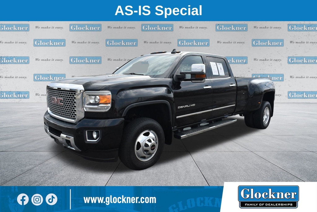 Glockner of Ironton is proud to offer this wonderful-looking 2016 GMC Sierra 3500HD in Onyx Black. This 2016 GMC Sierra 3500HD has passed our comprehensive inspection and comes with the following features; Driver Alert Package (Forward Collision Alert and Lane Departure Warning System), Duramax Plus Package, Preferred Equipment Group 5SA (110-Volt AC Power Outlet, 150 Amps Alternator, 8 Multi-Color Customizable Driver Display, Auto-Dimming Inside Rear-View Mirror, Chrome Bodyside Moldings, Chrome Door Handles, Chrome Power-Adjustable Heated Outside Mirrors, Color-Keyed Carpeted 1st & 2nd Row Floor Mats, Color-Keyed Carpeting Floor Covering, Deep-Tinted Glass, Driver & Front Passenger Visors, Dual-Zone Automatic Climate Control, Electric Rear-Window Defogger, Electronic Shift Transfer Case, EZ-Lift & Lower Tailgate, Front Body-Color Bumper, Front Frame-Mounted Black Recovery Hooks, Front Halogen Fog Lamps, HD Radio, Heated & Vented Front Seating, Leather Wrapped Heated Steering Wheel, Manual Tilt-Wheel/Telescoping Steering Column, OnStar Guidance Plan For 6 Months, OnStar w/4G LTE, Power Adjustable Pedals, Power Sliding Rear Window w/Defogger, Power Windows, Rear 60/40 Folding Bench Seat (Folds Up), Rear Body-Color Bumper w/Bumper CornerSteps, Rear Vision Camera w/Dynamic Guide Lines, Remote Keyless Entry, Remote Locking Tailgate, Remote Vehicle Starter System, Single-Slot CD/MP3 Player, Steering Wheel Audio Controls, Ultrasonic Front & Rear Park Assist, Unauthorized Entry Theft-Deterrent System, and Universal Home Remote), Standard Suspension Package, Trailering Equipment, AS-IS Certified, Allison 1000 6-Speed Automatic, 4WD, Jet Black Leather, 3.73 Rear Axle Ratio, 4-Wheel Disc Brakes, 4.10 Rear Axle Ratio, 7 Speakers, ABS brakes, Adjustable pedals, Air Conditioning, Alloy wheels, AM/FM radio: SiriusXM, Auto-dimming Rear-View mirror, Automatic temperature control, Bodyside moldings, Bose Speaker System, Brake assist, Bumpers: body-color, CD player, Compass, Delay-off headlights, Driver door bin, Driver vanity mirror, Dual 150 Amps & 220 Amps Each Alternator, Dual front impact airbags, Dual front side impact airbags, Electronic Stability Control, Emergency communication system: OnStar Guidance, Engine Block Heater, Exhaust Brake, Exterior Parking Camera Rear, Floor Mounted Console, Front anti-roll bar, Front Bucket Seats, Front Center Armrest, Front dual zone A/C, Front fog lights, Front Full Feature Bucket Seats, Front License Plate Kit, Front reading lights, Front wheel independent suspension, Fully automatic headlights, Garage door transmitter, Heated door mirrors, Heated Driver & Front Passenger Seats, Heated front seats, Heated steering wheel, High-Intensity Discharge Headlights, Illuminated entry, Memory seat, Navigation System, Occupant sensing airbag, Outside temperature display, Overhead airbag, Overhead console, Panic alarm, Passenger door bin, Passenger vanity mirror, Pedal memory, Perforated Leather-Appointed Seat Trim, Power door mirrors, Power driver seat, Power passenger seat, Power steering, Power Sunroof, Power windows, Premium audio system: IntelliLink, Radio: AM/FM/SiriusXM w/IntelliLink & Navigation, Rear reading lights, Rear seat center armrest, Rear step bumper, Rear window defroster, Remote keyless entry, Security system, SiriusXM Satellite Radio, Speed control, Speed-sensing steering, Split folding rear seat, Steering wheel mounted audio controls, Tachometer, Telescoping steering wheel, Tilt steering wheel, Traction control, Trip computer, Turn signal indicator mirrors, Variably intermittent wipers, Ventilated front seats, Voltmeter, and Wireless Charging.