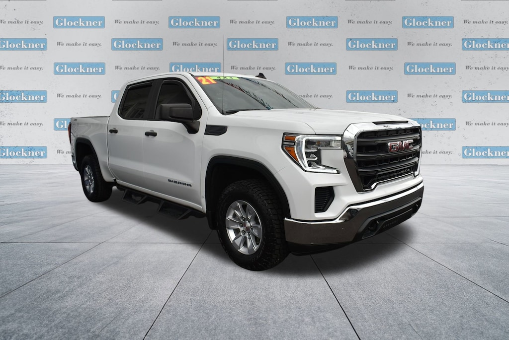 Glockner of Ironton is proud to offer this charming 2021 GMC Sierra 1500 in Summit White. This 2021 GMC Sierra 1500 has passed our comprehensive inspection and comes with the following features; Convenience Package (Cruise Control, Deep-Tinted Glass, Electric Rear-Window Defogger, EZ Lift Power Lock & Release Tailgate, Heated Power-Adjustable Outside Mirrors, LED Cargo Area Lighting, and Remote Keyless Entry), Preferred Equipment Group 1SA (170 Amp Alternator, Black Manual Outside Mirrors, Chrome Surround Grille w/Black Mesh, Front Frame-Mounted Black Recovery Hooks, Power Rear Windows w/Express Down, and Solar Absorbing Tinted Glass), Sierra Value Package, Trailering Package (Hitch Guidance), X31 Off-Road Package (Auto-Locking Rear Differential, Heavy-Duty Air Filter, Hill Descent Control, and Off-Road Suspension), 6-Speed Automatic, 4WD, Black Cloth, 3.42 Rear Axle Ratio, 4-Way Manual Driver Seat Adjuster, 4-Way Manual Passenger Seat Adjuster, 4-Wheel Disc Brakes, 4G LTE Wi-Fi Hotspot Capable, 6 Speakers, 6-Speaker Audio System Feature, ABS brakes, Air Conditioning, AM/FM radio, Apple CarPlay/Android Auto, Auxiliary External Transmission Oil Cooler, Brake assist, Bumpers: chrome, Delay-off headlights, Driver door bin, Dual front impact airbags, Dual front side impact airbags, Electronic Stability Control, Front 40/20/40 Split-Bench Seat, Front anti-roll bar, Front Center Armrest w/Storage, Front reading lights, Front wheel independent suspension, Fully automatic headlights, GMC Connected Access Capable, Heavy Duty Suspension, Low tire pressure warning, Not Equipped w/Active Fuel Management, Occupant sensing airbag, OnStar & GMC Connected Services Capable, Outside temperature display, Overhead airbag, Overhead console, Passenger door bin, Passenger vanity mirror, Power steering, Power windows, Premium audio system: GMC Infotainment System, Radio data system, Radio: GMC Infotainment Audio System, Rear reading lights, Rear step bumper, SiriusXM Radio, Speed-sensing steering, Split folding rear seat, Tachometer, Tilt steering wheel, Traction control, Trip computer, Variably intermittent wipers, Vinyl Seat Trim, Voltmeter, Wheels: 17 x 8 Bright Silver Painted Aluminum, and Wheels: 17 x 8 Silver Painted Steel.