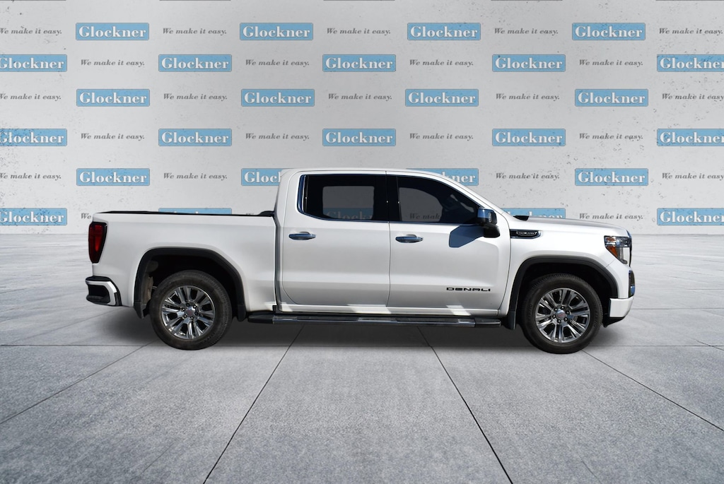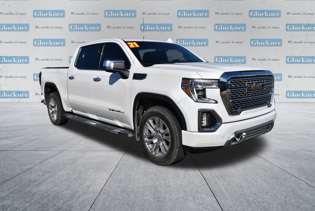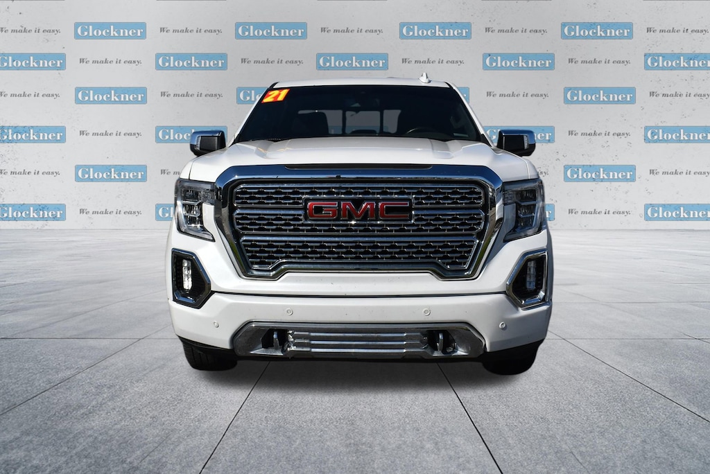 Glockner of Ironton is proud to offer this attractive 2021 GMC Sierra 1500 in White Frost Tricoat. This 2021 GMC Sierra 1500 has passed our comprehensive inspection and comes with the following features; Driver Alert Package I (Lane Change Alert w/Side Blind Zone Alert, Rear Cross Traffic Alert, and Ultrasonic Front & Rear Park Assist), Driver Alert Package II (Adaptive Cruise Control, Automatic Emergency Braking, Following Distance Indicator, Forward Collision Alert, Front Pedestrian Braking, IntelliBeam Automatic High Beam On/Off, and Lane Keep Assist w/Lane Departure Warning), Preferred Equipment Group 5SA (12-Volt Rear Auxiliary Power Outlet, 120-Volt Bed Mounted Power Outlet, 120-Volt Instrument Panel Power Outlet, 170 Amp Alternator, 2 USB Ports, 2 USB Ports (1st Row), 4G LTE Wi-Fi Hotspot Capable, Auto-Locking Rear Differential, Auxiliary External Transmission Oil Cooler, Chrome Recovery Hooks, Chrome Wheel To Wheel Assist Steps, Color-Keyed Carpeting Floor Covering, Compass, Deep-Tinted Glass, Electric Rear-Window Defogger, Electrical Lock Control Steering Column, Floor-Mounted Center Console, GMC Connected Access Capable, HD Rear Vision Camera, Heated Driver & Front Outboard Passenger Seating, Heavy-Duty Air Filter, Hill Descent Control, Hitch Guidance w/Hitch View, In-Vehicle Trailering App, Integrated Trailer Brake Controller, Keyless Open & Start, LED Cargo Area Lighting, Manual Tilt-Wheel & Telescoping Steering Column, OnStar & GMC Connected Services Capable, Power Door Locks, Power Front Passenger Windows w/Express Up/Down, Power Front Windows w/Driver Express Up/Down, Power Rear Windows w/Express Down, Power Sliding Rear Window w/Rear Defogger, ProGrade Trailering System, Rear Dual USB Charging-Only Ports, Rear Wheelhouse Liners, Remote Vehicle Starter System, Safety Alert Seat, Signature Denali Grille, Spray-On Pickup Bed Liner w/Denali Logo, Steering Wheel Audio Controls, Theft Deterrent System (Unauthorized Entry), Universal Home Remote, Ventilated Driver & Front Passenger Seats, and Wireless Charging), Trailering Package (Hitch Guidance), 10-Speed Automatic, 4WD, Dark Walnut/Dark Ash Grey Leather, 10-Way Power Driver Seat Adjuster w/Lumbar, 10-Way Power Passenger Seat Adjuster w/Lumbar, 3.23 Rear Axle Ratio, 4-Wheel Disc Brakes, 7 Speakers, ABS brakes, Adaptive Ride Control Suspension, Adaptive suspension, Air Conditioning, All-Weather Floor Liner (LPO), Alloy wheels, AM/FM radio: SiriusXM with 360L, Apple CarPlay/Android Auto, Auto-dimming door mirrors, Auto-dimming Rear-View mirror, Automatic temperature control, Brake assist, Bumpers: body-color, Delay-off headlights, Driver door bin, Driver Memory, Driver vanity mirror, Dual front impact airbags, Dual front side impact airbags, Electronic Stability Control, Forge Perforated Leather-Appointed Seat Trim, Front anti-roll bar, Front Bucket Seats, Front Center Armrest, Front dual zone A/C, Front fog lights, Front reading lights, Front wheel independent suspension, Fully automatic headlights, Garage door transmitter, Genuine wood console insert, Genuine wood door panel insert, Heated door mirrors, Heated front seats, Heated steering wheel, Illuminated entry, Low tire pressure warning, Memory seat, Navigation System, Occupant sensing airbag, Outside temperature display, Overhead airbag, Overhead console, Panic alarm, Passenger door bin, Passenger vanity mirror, Power door mirrors, Power driver seat, Power passenger seat, Power steering, Power windows, Premium audio system: GMC Infotainment System, Premium Bose 7-Speaker Sound System, Radio data system, Radio: Premium GMC Infotainment Sys w/Navigation, Rear reading lights, Rear seat center armrest, Rear step bumper, Rear Underseat Storage (LPO), Rear window defroster, Remote keyless entry, Security system, SiriusXM w/360L, Speed control, Speed-sensing steering, Split folding rear seat, Steering wheel mounted audio controls, Tachometer, Telescoping steering wheel,