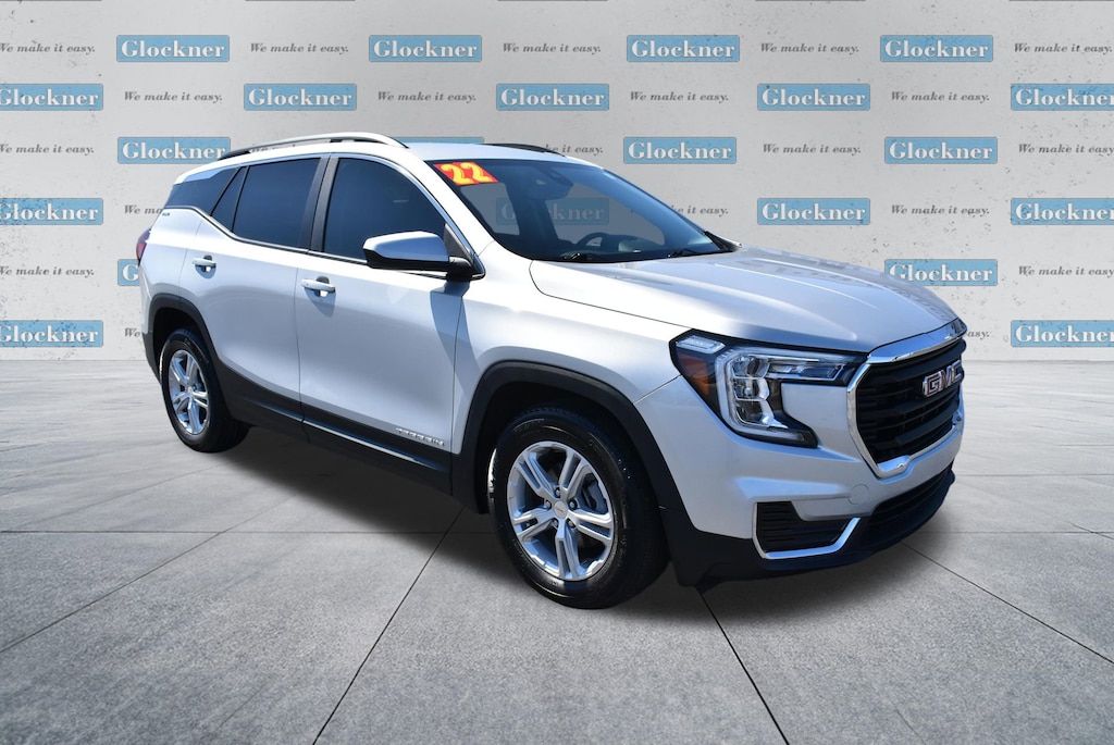 Glockner of Ironton is proud to offer this handsome 2022 GMC Terrain in Quicksilver Metallic. This 2022 GMC Terrain has passed our comprehensive inspection and comes with the following features; Driver Convenience Package (8-Way Power Driver Seat Adjuster, Driver & Front Passenger Heated Seats, Dual-Zone Automatic Climate Control, Power Driver Lumbar Control, Remote Start, and Roof-Mounted Luggage Rack Side Rails), Preferred Equipment Group 3SA, 2 USB Data Ports w/Auxiliary Input Jack, 3 Years of OnStar & Connected Services Plan, 3.47 Axle Ratio, 4-Way Manual Driver's Seat, 4-Way Manual Front Passenger Seat, 4-Wheel Disc Brakes, 4.2 Multi-Color Driver Information Screen, 6 Speakers, 6-Speaker Audio System Feature, ABS brakes, Air Conditioning, Alloy wheels, AM/FM radio: SiriusXM, Auto High-beam Headlights, Auto-dimming Rear-View mirror, Automatic temperature control, Bluetooth® For Phone, Brake assist, Bumpers: body-color, Compass, Delay-off headlights, Driver door bin, Driver vanity mirror, Dual front impact airbags, Dual front side impact airbags, Electronic Stability Control, Emergency communication system: OnStar Guidance, Four wheel independent suspension, Front anti-roll bar, Front Bucket Seats, Front Center Armrest, Front reading lights, Fully automatic headlights, Heated door mirrors, Illuminated entry, Low tire pressure warning, Occupant sensing airbag, Outside temperature display, Overhead airbag, Overhead console, Panic alarm, Passenger door bin, Passenger vanity mirror, Power door mirrors, Power steering, Power windows, Premium Cloth Seat Trim, Radio data system, Radio: GMC Infotainment Audio System w/7 Display, Rear anti-roll bar, Rear seat center armrest, Rear window defroster, Rear window wiper, Remote keyless entry, Security system, SiriusXM Radio, Speed control, Speed-sensing steering, Split folding rear seat, Spoiler, Steering wheel mounted audio controls, Tachometer, Telescoping steering wheel, Tilt steering wheel, Traction control, Trip computer, Variably intermittent wipers, Wheels: 17 x 7 Silver Painted Aluminum, and Wireless Apple CarPlay/Wireless Android Auto.