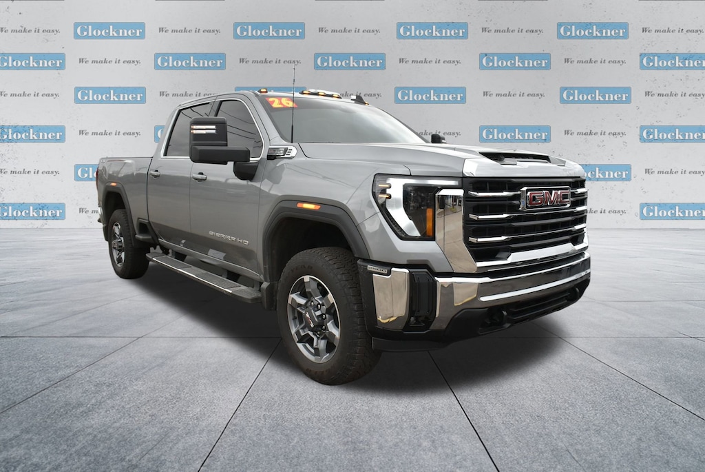 Glockner of Ironton is proud to offer this wonderful 2026 GMC Sierra 2500HD in Sterling Metallic. This 2026 GMC Sierra 2500HD has passed our comprehensive inspection and comes with the following features; Suspension Package, Glockner Certified Certified, 10-Speed Automatic, 4WD, Dark Walnut/Slate w/Cloth Seat Trim, 120-Volt Bed Mounted Power Outlet, 120-Volt Instrument Panel Power Outlet, 17 Machined Aluminum Wheels, 2 Charge-Only Rear USB Ports, 2 Charge/Data USB Ports, 2-Speed Electronic Shift Transfer Case, 4-Way Manual Driver Seat Adjuster, 4-Way Manual Passenger Seat Adjuster, 4-Wheel Disc Brakes, 6 Speakers, 6-Speaker Audio System Feature, ABS brakes, Air Conditioning, Alloy wheels, AM/FM radio: SiriusXM with 360L, Apple CarPlay/Android Auto, Auto High-beam Headlights, Automatic Emergency Braking, Brake assist, Buckle to Drive, Bumpers: chrome, Chrome Surround Grille with Chrome Insert Bars, Cloth Seat Trim, Compass, Deep-Tinted Glass, Delay-off headlights, Driver door bin, Driver vanity mirror, Dual front impact airbags, Dual front side impact airbags, Electronic Stability Control, Emergency communication system: OnStar, Following Distance Indicator, Forward Collision Alert, Front 40/20/40 Split-Bench Seats, Front anti-roll bar, Front Center Armrest w/Storage, Front Pedestrian Braking, Front reading lights, Front wheel independent suspension, Fully automatic headlights, Heated door mirrors, Heavy-Duty 80 Amp Battery, Illuminated entry, IntelliBeam Automatic High Beam on/Off, Keyless Open and Start, Lane Departure Warning System, Low tire pressure warning, Occupant sensing airbag, OnStar Services Capable, Outside temperature display, Overhead airbag, Overhead console, Panic alarm, Passenger door bin, Passenger vanity mirror, Pickup Box, Power door mirrors, Power steering, Power windows, Premium audio system: Premium GMC Infotainment System, Push Button Start, Radio: AM/FM Stereo with Premium GMC Infotainment System, Rear reading lights, Rear step bumper, Remote keyless entry, SiriusXM with 360L Trial Subscription, Speed control, Split folding rear seat, Steering Wheel Audio Controls, Steering wheel mounted audio controls, Tachometer, Tilt steering wheel, Traction control, Trip computer, Turn signal indicator mirrors, Variably intermittent wipers, Voltmeter, and Wireless Phone Projection.