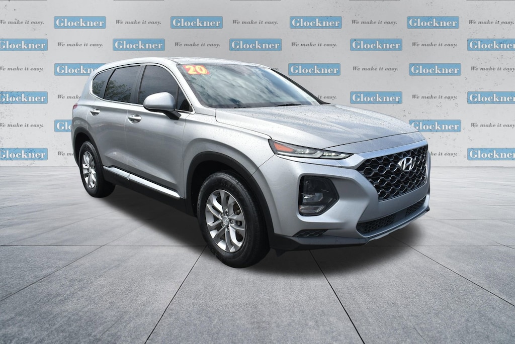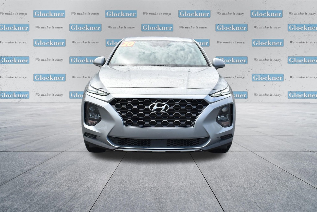 Glockner of Ironton is proud to offer this charming-looking 2020 Hyundai Santa Fe in Shimmering Silver Pearl. This 2020 Hyundai Santa Fe has passed our comprehensive inspection and comes with the following features; Option Group 01, Black/Black Cloth, 17 x 7.0J Alloy Wheels, 4-Wheel Disc Brakes, 6 Speakers, ABS brakes, Air Conditioning, Alloy wheels, AM/FM radio, Apple CarPlay & Android Auto, Auto High-beam Headlights, Axle Ratio 3.798, Brake assist, Bumpers: body-color, Cargo Cover, Carpeted Floor Mats, Delay-off headlights, Driver door bin, Driver vanity mirror, Dual front impact airbags, Dual front side impact airbags, Electronic Stability Control, Exterior Parking Camera Rear, Four wheel independent suspension, Front anti-roll bar, Front Bucket Seats, Front Center Armrest, Front reading lights, Fully automatic headlights, Illuminated entry, Low tire pressure warning, Occupant sensing airbag, Outside temperature display, Overhead airbag, Overhead console, Panic alarm, Passenger door bin, Passenger vanity mirror, Power door mirrors, Power steering, Power windows, Radio: AM/FM/MP3 Display Audio, Rear anti-roll bar, Rear seat center armrest, Rear window defroster, Rear window wiper, Remote keyless entry, Security system, Speed control, Speed-sensing steering, Split folding rear seat, Spoiler, Stain-Resistant Cloth Seating Surfaces, Steering wheel mounted audio controls, Tachometer, Telescoping steering wheel, Tilt steering wheel, Traction control, Trip computer, Variably intermittent wipers, and Wheel Locks.Black/Black Cloth.22/29 City/Highway MPG