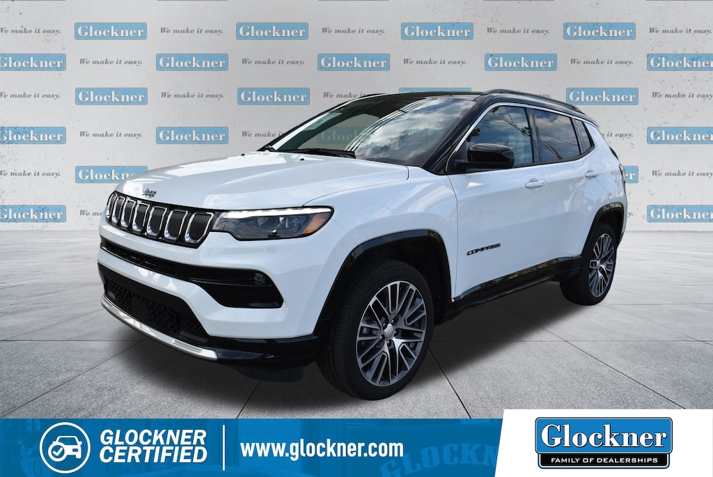 Glockner Chrysler Dodge Jeep Ram of Ashland is proud to offer this good-looking 2022 Jeep Compass in Bright White Clearcoat. This 2022 Jeep Compass has passed our comprehensive inspection and comes with the following features; Elite Group (10.1" Touchscreen Display, 115V Auxiliary Power Outlet, 2nd Row Heated Seats, 2nd Row USB Type A/C Charge Only, 4G LTE Wi-Fi Hot Spot, Alexa Built-In, Cluster 10.25" TFT Color Display, Connected Travel & Traffic Services, Disassociated Touchscreen Display, Driver Seat Memory, Foot Activated Open 'N Go Liftgate, For Details, Visit DriveUconnect.com, For More Info, Call 800-643-2112, Global Telematics Box Module (TBM), Gloss Black Door Cladding, Gloss Black Exterior Sill, Gloss Black Fascias, Gloss Black Wheel Flares, GPS Navigation, HD Radio, Integrated Voice Command w/Bluetooth, LED Low/Highbeam Projector Headlamps, No Satellite Coverage HI/AK/PR/VI/GU, Power 2-Way Passenger Lumbar Adjust, Power 8-Way Adjust Front Passenger Seat, Power Liftgate, Premium Leather Trimmed Bucket Seats, Premium LED Fog Lamps, Premium Taillamps, Radio: Uconnect 5 Nav w/10.1" Display, Reversible Carpet/Vinyl Cargo Mat, SiriusXM Guardian - Included Trial (B), SiriusXM Radio Service, SiriusXM Satellite Radio, SiriusXM w/360L, Ventilated Front Seats, and Wheels: 19" x 7.5" Painted Diamond Cut Aluminum), Quick Order Package 2GG, Glockner Certified Certified, 4WD, 3.73 Axle Ratio, 4-Wheel Disc Brakes, 6 Speakers, ABS brakes, Air Conditioning, Alloy wheels, AM/FM radio: SiriusXM, Anti-whiplash front head restraints, Auto High-beam Headlights, Auto-dimming Rear-View mirror, Automatic temperature control, Brake assist, Bumpers: body-color, Compass, Delay-off headlights, Driver door bin, Driver vanity mirror, Dual front impact airbags, Dual front side impact airbags, Electronic Stability Control, Emergency communication system: SiriusXM Guardian, Four wheel independent suspension, Front anti-roll bar, Front Bucket Seats, Front Center Armrest w/Storage, Front dual zone A/C, Front fog lights, Front reading lights, Fully automatic headlights, Gloss Black Exterior Mirrors, Heated door mirrors, Heated front seats, Heated steering wheel, Illuminated entry, Knee airbag, Leather Shift Knob, Leather Trimmed Bucket Seats, Low tire pressure warning, Occupant sensing airbag, Outside temperature display, Overhead airbag, Overhead console, Panic alarm, ParkView Rear Back-Up Camera, Passenger door bin, Passenger vanity mirror, Power door mirrors, Power driver seat, Power steering, Power windows, Radio: Uconnect 5 w/10.1" Display, Rain sensing wipers, Rear anti-roll bar, Rear seat center armrest, Rear window defroster, Rear window wiper, Remote keyless entry, Roof rack: rails only, Security system, Speed control, Split folding rear seat, Spoiler, Steering wheel mounted audio controls, Tachometer, Telescoping steering wheel, Tilt steering wheel, Traction control, Trip computer, Turn signal indicator mirrors, Variably intermittent wipers, and Wheels: 18" x 7" Painted Diamond Cut AluminuM.