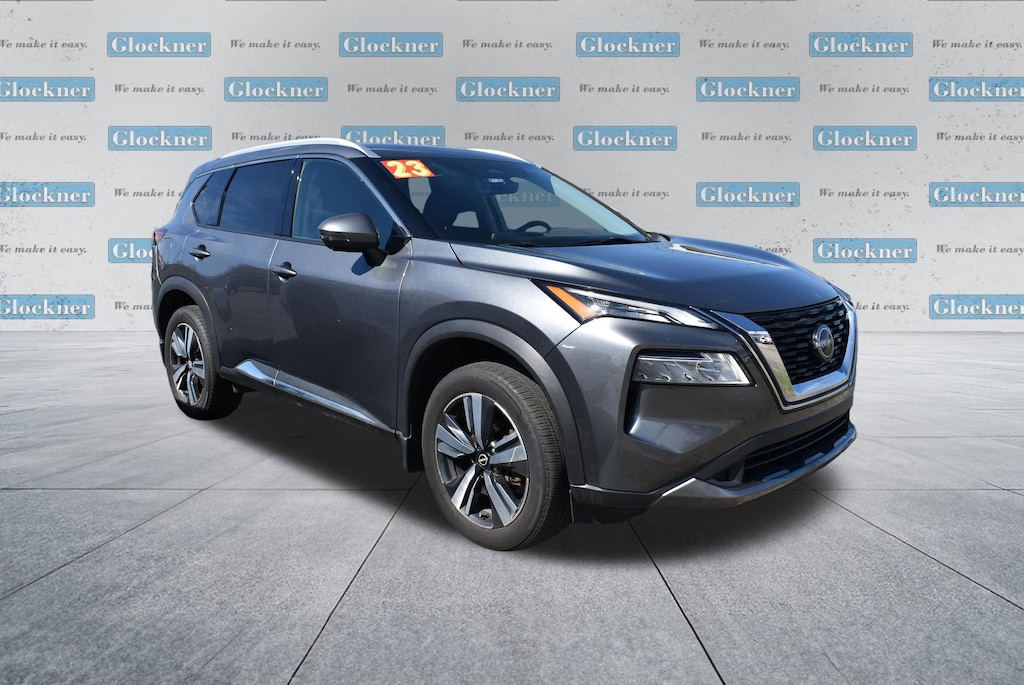 Glockner of Ironton is proud to offer this wonderful 2023 Nissan Rogue in Gun Metallic. This 2023 Nissan Rogue has passed our comprehensive inspection and comes with the following features; Glockner Certified Certified, AWD, 19 Aluminum Alloy Wheels, 4-Wheel Disc Brakes, 5.604 Axle Ratio, 6 Speakers, ABS brakes, Air Conditioning, Alloy wheels, AM/FM Radio, AM/FM radio: SiriusXM, Auto High-beam Headlights, Auto-dimming Rear-View mirror, Automatic temperature control, Black Splash Guards (Set of 4), Brake assist, Bumpers: body-color, Delay-off headlights, Driver door bin, Driver vanity mirror, Dual front impact airbags, Dual front side impact airbags, Electronic Stability Control, Emergency communication system: NissanConnect Services, Floor Mats w/2-Piece Cargo Area Protector, Four wheel independent suspension, Frameless Rearview Mirror w/Universal Remote, Front anti-roll bar, Front Bucket Seats, Front Center Armrest, Front dual zone A/C, Front reading lights, Fully automatic headlights, Heated door mirrors, Heated Front Bucket Seats, Heated front seats, Heated steering wheel, Illuminated entry, Knee airbag, Leather steering wheel, Leather-Appointed Seat Trim, Low tire pressure warning, Memory seat, NissanConnect featuring Apple CarPlay and Android Auto, Occupant sensing airbag, Outside temperature display, Overhead airbag, Overhead console, Panic alarm, Passenger door bin, Passenger vanity mirror, Power door mirrors, Power driver seat, Power Liftgate, Power moonroof, Power passenger seat, Power steering, Power windows, Radio data system, Rear anti-roll bar, Rear Parking Sensors, Rear reading lights, Rear seat center armrest, Rear side impact airbag, Rear window defroster, Rear window wiper, Remote keyless entry, Security system, Speed control, Speed-Sensitive Wipers, Split folding rear seat, Spoiler, Steering wheel mounted audio controls, Tachometer, Telescoping steering wheel, Tilt steering wheel, Traction control, Trip computer, Turn signal indicator mirrors, and Variably intermittent wipers.