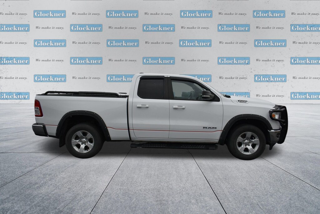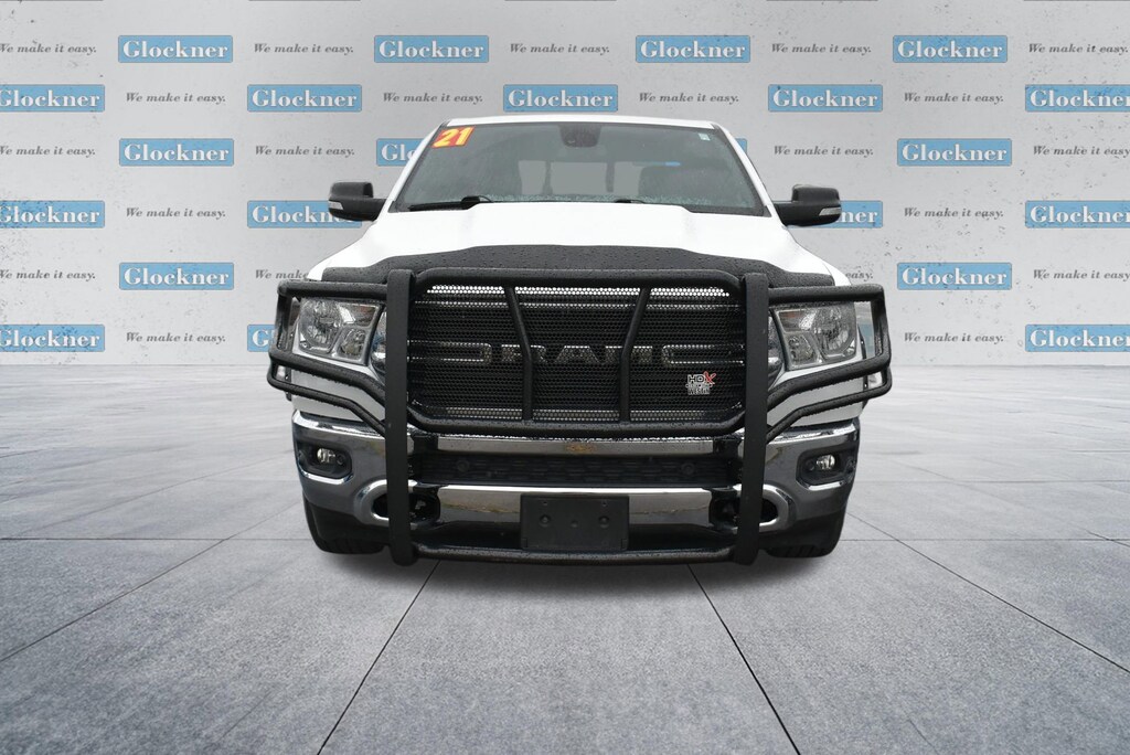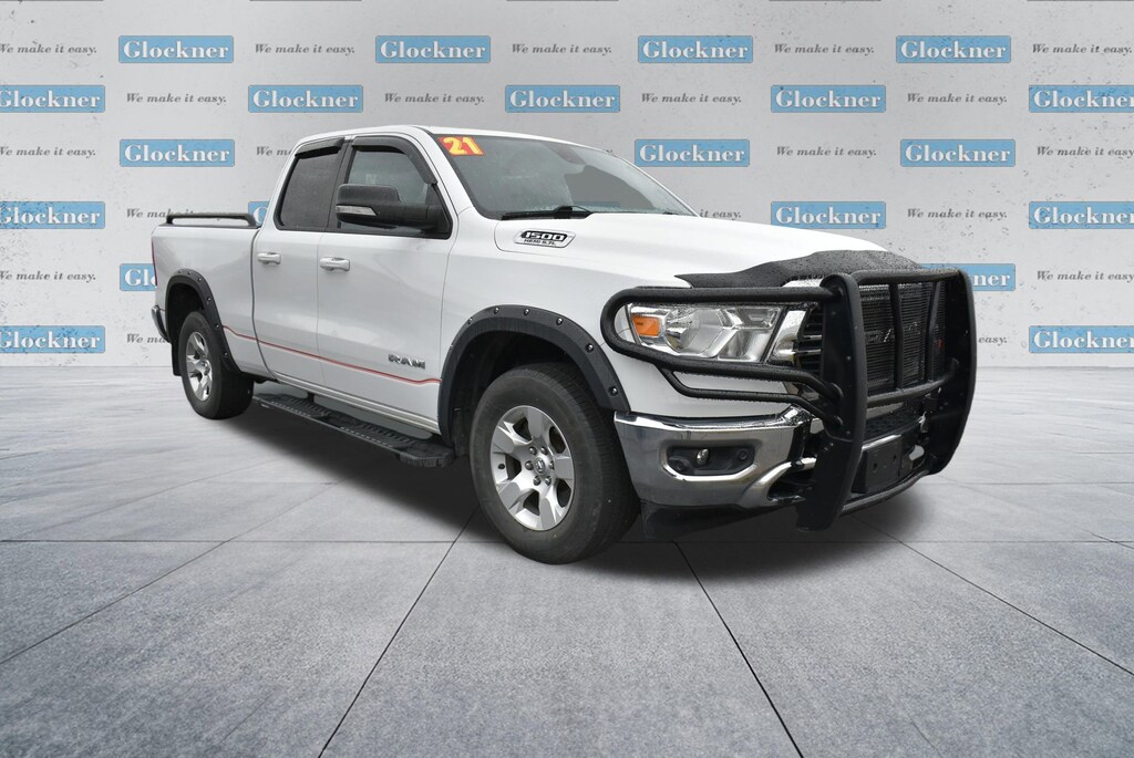 Glockner of Ironton is proud to offer this charming 2021 Ram 1500 in Bright White Clearcoat. This 2021 Ram 1500 has passed our comprehensive inspection and comes with the following features; Big Horn Level 2 Equipment Group (115V Auxiliary Power Outlet, 115V Auxiliary Rear Power Outlet, 400W Inverter, Air Conditioning ATC w/Dual Zone Control, Auto-Dimming Exterior Driver Mirror, Auto-Dimming Rear-View Mirror, Black Premium Power Mirrors, Class IV Receiver Hitch, Cluster 7.0 TFT Color Display, Exterior Mirrors Courtesy Lamps, Exterior Mirrors w/Supplemental Signals, Foam Bottle Insert (Door Trim Panel), For More Info, Call 800-643-2112, Glove Box Lamp, Heated Front Seats, Heated Steering Wheel, Media Hub w/2 Charge Only USBs, ParkSense Front/Rear Park Assist w/Stop, Power 4-Way Driver Lumbar Adjust, Power 8-Way Driver Seat, Power Adjustable Pedals, Power-Folding Mirrors, Rear Dome w/On/Off Switch Lamp, Rear Power Sliding Window, Rear Window Defroster, Security Alarm, SiriusXM Radio Service, Sun Visors w/Illuminated Vanity Mirrors, and Universal Garage Door Opener), Quick Order Package 25Z Big Horn (Big Horn Badge), Glockner Certified Certified, 3 Rear Seat Head Restraints, 3.21 Rear Axle Ratio, 4 Way Front Headrests, 4-Wheel Disc Brakes, 40/20/40 Split Bench Seat, 48V Belt Starter Generator, 6 Speakers, ABS brakes, Air Conditioning, Alloy wheels, AM/FM radio, Black Exterior Mirrors, Brake assist, Bumpers: chrome, Cloth Bench Seat, Compass, Delay-off headlights, Driver door bin, Dual front impact airbags, Dual front side impact airbags, Electronic Stability Control, Front anti-roll bar, Front Center Armrest w/Storage, Front fog lights, Front License Plate Bracket, Front reading lights, Front Seat Back Map Pockets, Front wheel independent suspension, Fully automatic headlights, GPS Antenna Input, Heated door mirrors, Illuminated entry, Integrated Voice Command w/Bluetooth, Leather steering wheel, Low tire pressure warning, Manual Adjust 4-Way Front Passenger Seat, MOPAR Front & Rear Rubber Floor Mats, Occupant sensing airbag, Outside temperature display, Overhead airbag, Overhead console, Panic alarm, ParkView Rear Back-Up Camera, Passenger door bin, Passenger vanity mirror, Power door mirrors, Power steering, Power windows, Radio data system, Radio: Uconnect 3 w/5 Display, Radio: Uconnect 4 w/8.4 Display, Rear 60/40 Folding Seat, Rear anti-roll bar, Rear seat center armrest, Rear step bumper, Remote keyless entry, Remote Start System, Speed control, Split folding rear seat, Steering wheel mounted audio controls, Tachometer, Telescoping steering wheel, Tilt steering wheel, Traction control, Trip computer, Variably intermittent wipers, Voltmeter, and Wheels: 18 x 8 Cast-Aluminum Painted.